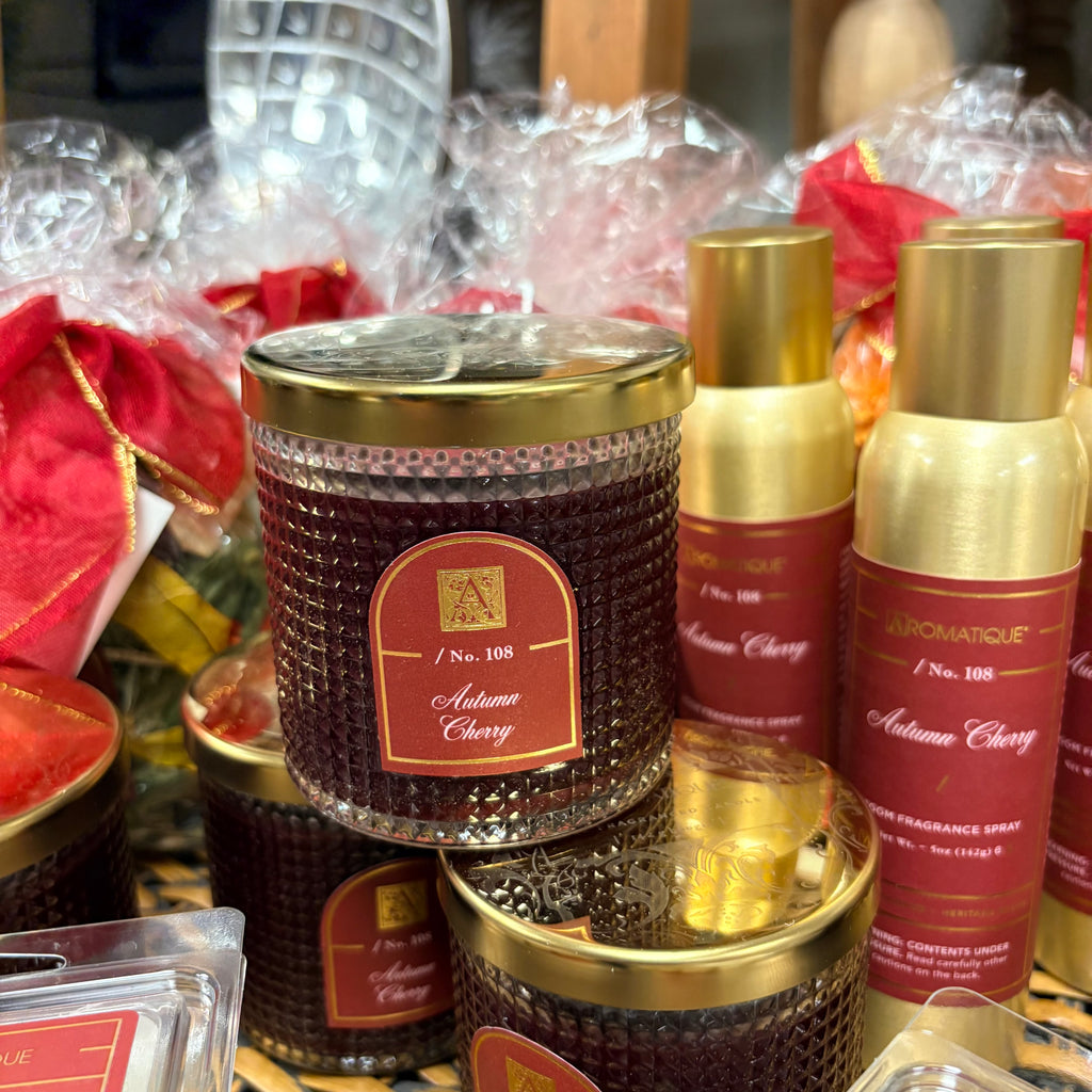 Autumn Cherry is a warm, inviting blend of spiced cherry, apple, and cinnamon, wrapped in smooth notes of vanilla, musk, and amber. Aromatique Wax Melts are a set of 8 cubes made with paraffin wax and infused with highly concentrated fragrance—no wick or flame needed for a cozy, room-filling scent.